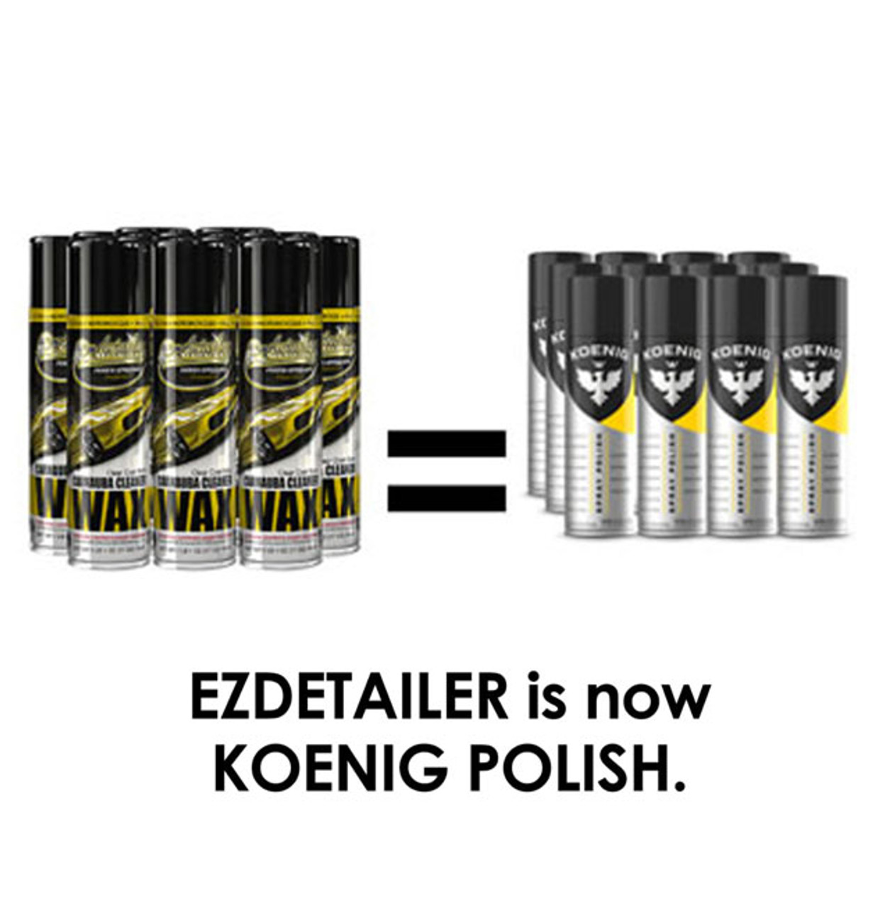 In 2014, thinking the name EZdetailer was too vehicle-specific, we rebranded as Koenig Polish, a fresh new unmistakable visual identity for our same beloved product. Aside from the name, nothing else has changed and our original all-in-one formula remains the same.
